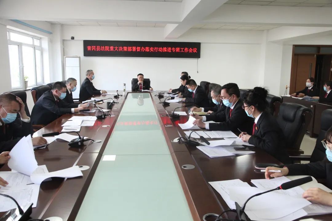 4月27日下午,青冈县人民法院召开召开重大决策部署督办落实行动推进专班工作会议。党组书记、院长孙长久主持会议并讲话。党组成员、部门负责人、庭科长及专项工作推进专班人员参加会议。