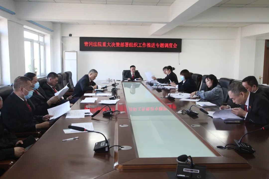近日,青冈法院召开了重大决策部署组织工作推进专题调度会,推进“能力作风建设年”活动有序、高效开展。党组成员、各专项工作推进专班负责人参加了会议。“能力作风建设年”活动领导小组组长、党组书记、院长孙长久出席会议并作工作部署。