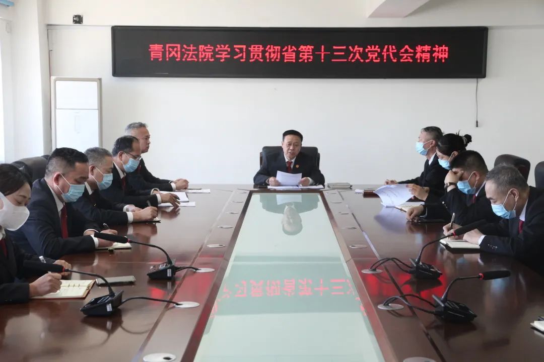 5月7日下午,青冈县人民法院召开党组(扩大)会议,传达学习贯彻黑龙江省第十三次党代会精神。
