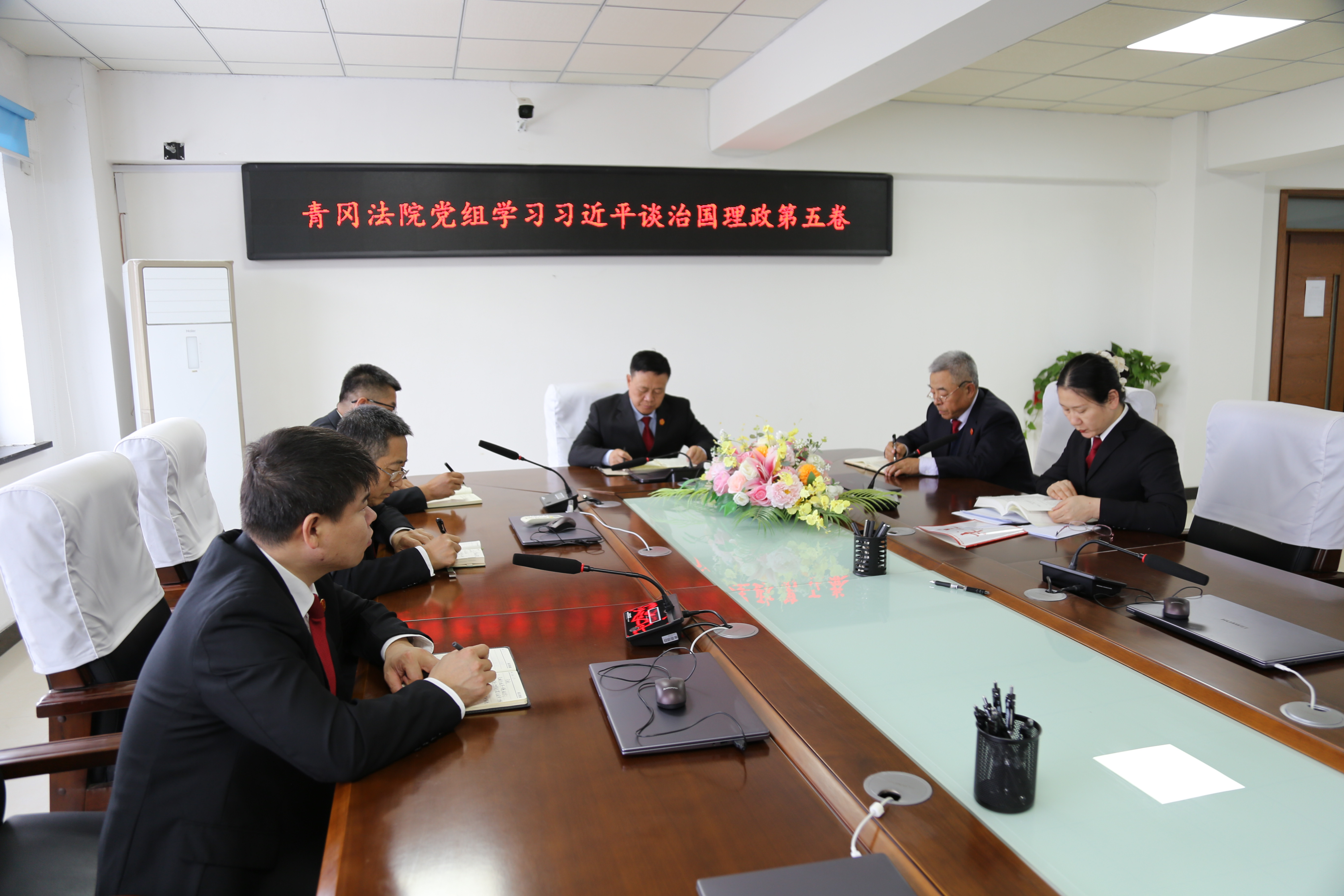 10月31日,青冈法院召开党组理论学习中心组会议,专题学习研讨《习近平谈治国理政》第五卷。会议由党组书记、院长孙长久主持,党组成员悉数参会,学习氛围浓厚热烈。